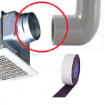 (3)ダクトは天井吊り金具が少し当たるので少し筐体に食い込みが悪いが、まあ使える範囲とした。プチル系の防水アルミテープで2重巻きしてつなぎ目の防水完了。
